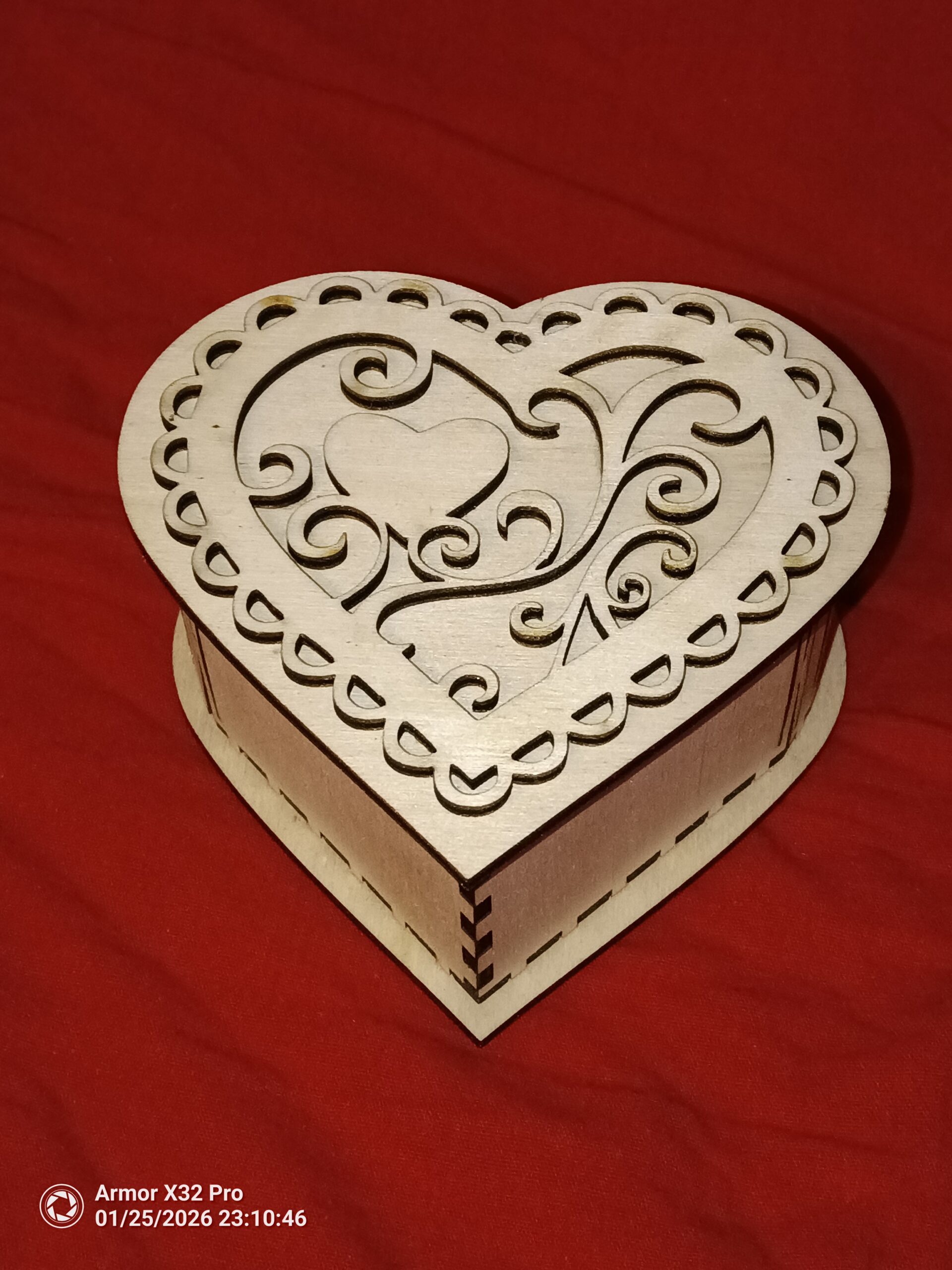 Boite en forme de cœur avec un couvercle amovible aux motifs floraux, pouvant contenir bijoux ou autres surprises pour la Saint Valentin.