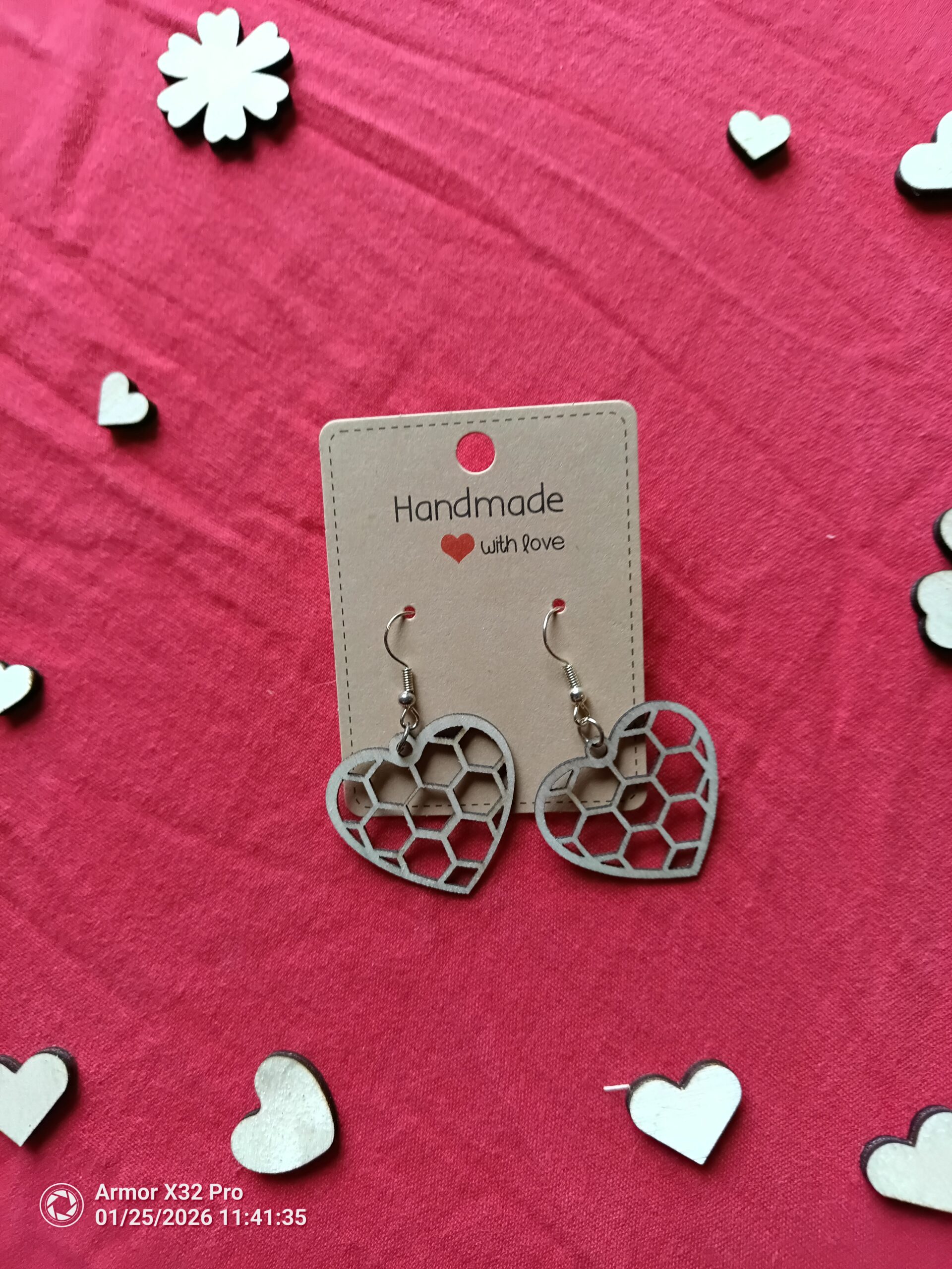 Boucles d’oreilles en forme cœur avec pavage d’hexagones à l’intérieur, une idée cadeau pour la Saint Valentin,